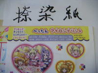 ![]() なっせん紙です。シャツやハンカチに 紙をあて、上からアイロンで熱を加える ことによって絵柄をプリントします。 |
